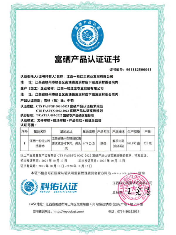 江西一粒紅塵農業發展有限公司是一家總部位于江西省贛縣的現代農業多元型企業,專注于食用菌的研發種植深加工貿易研教培農文旅等全產業鏈發展。公司秉承“健康綠色共享共贏”的核心價值觀,致力于引領鄉村振興之路,旨在成為......